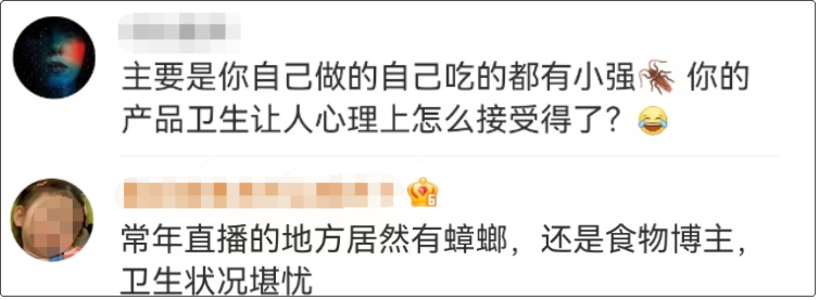 “直播过程中弹幕有提醒有蟑螂