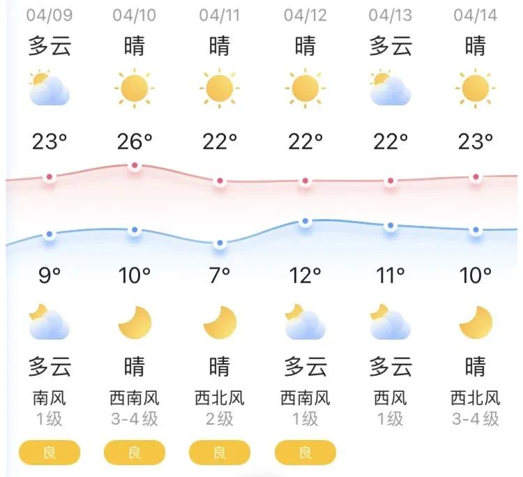 今日多云,气温9~23℃