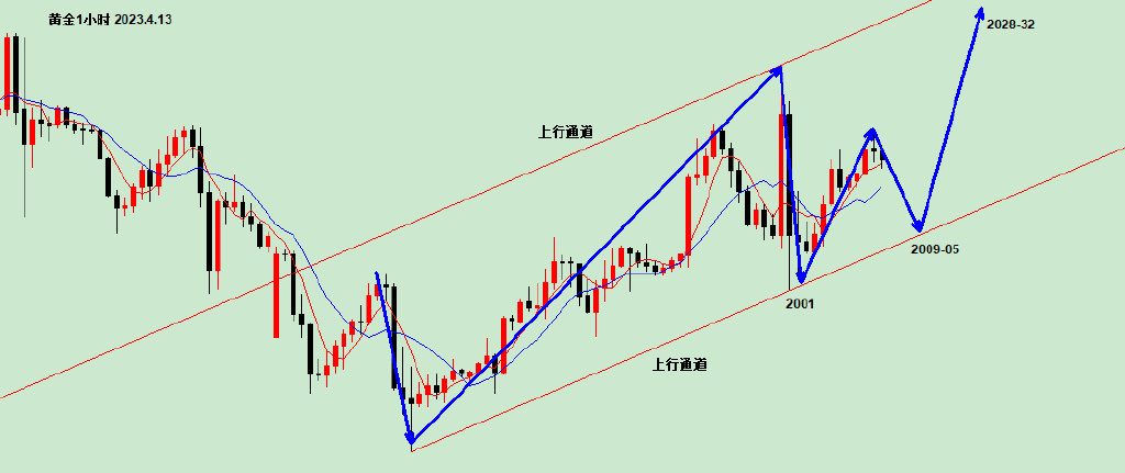 如图所示,下方是一张黄金1小时上行通道结构图,通道下轨的支撑目前在2005-06位置,假如现在1秒钟跌到2005-06咱们是可以做多的,不过随着时间的推移,这个支撑位置会发生微妙的变化,可能变成2007或2008甚至2009。