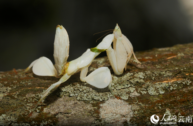 ☞近日,云南省普洱市宁洱县同心镇石膏井村村民在外出采摘野菜时发现兰花螳螂。