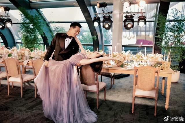 另外,在婚宴现场,换上紫色礼服裙的何超莲翩翩起舞,窦骁托住老婆身体默契配合。