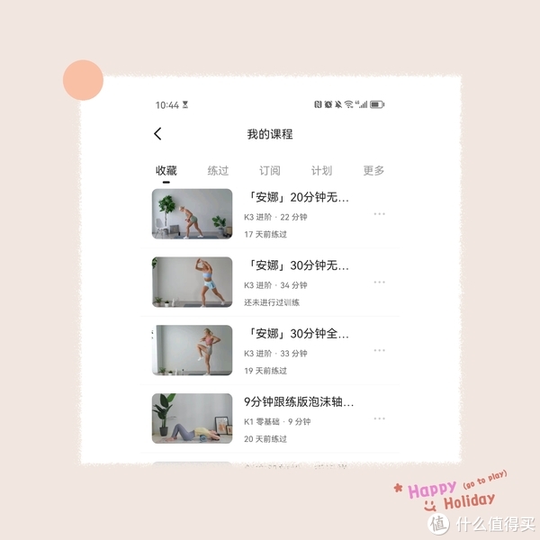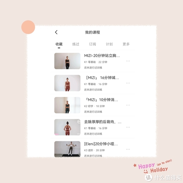 真的是出师未捷啊,才真正开启锻炼第二天,我的左脚大拇指就光荣负伤了,感觉接下来的一个多礼拜,是不能够再高强度或者跑跳的练习了,只能温和一些,做一做垫上瑜伽或者普拉提,或者站立瘦腰不跑跳类的,于是我赶紧又去keep里搜索,收藏了一些可以躺着,坐着,蹲着,跪着或者站着的跟练视频,比如最近很火的Eleni fit,Mizi和安娜,都是全网很多人跟练的视频,反馈也说效果不错,或者帕梅拉也可以,有很多躺着的练上肢的练习,我也是可以的