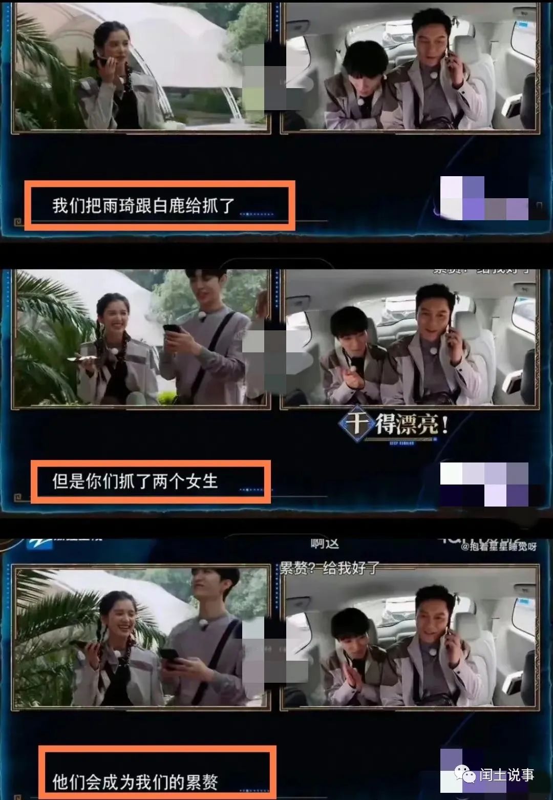 节目中范丞丞打电话告诉李晨说,我们把白鹿和宋雨琦抓住了。李晨回答道,但是你们抓了两个女生,她们会成为我们的累赘。
