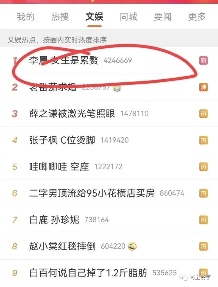 果然不出所料,不久后“李晨 女生是累赘”的相关词条立马空降高位热搜,热度和话题度还盖过了当天众星云集的北京国际电影节红毯。