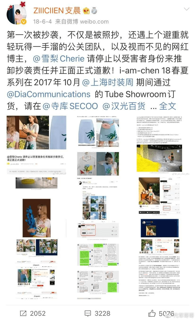 2018年3月,雪梨家的服装也被曝抄袭原创品牌i-am-chen,还被设计师挂出来公开处刑。山寨、抄袭在整个行业蔚然成风,网红店有流量有受众、有资本有供应链,却不愿在原创和质量上多下功夫。群众的眼睛是雪亮的,网红电商的光环渐渐消失,已经成为了“高价低质”的代名词。