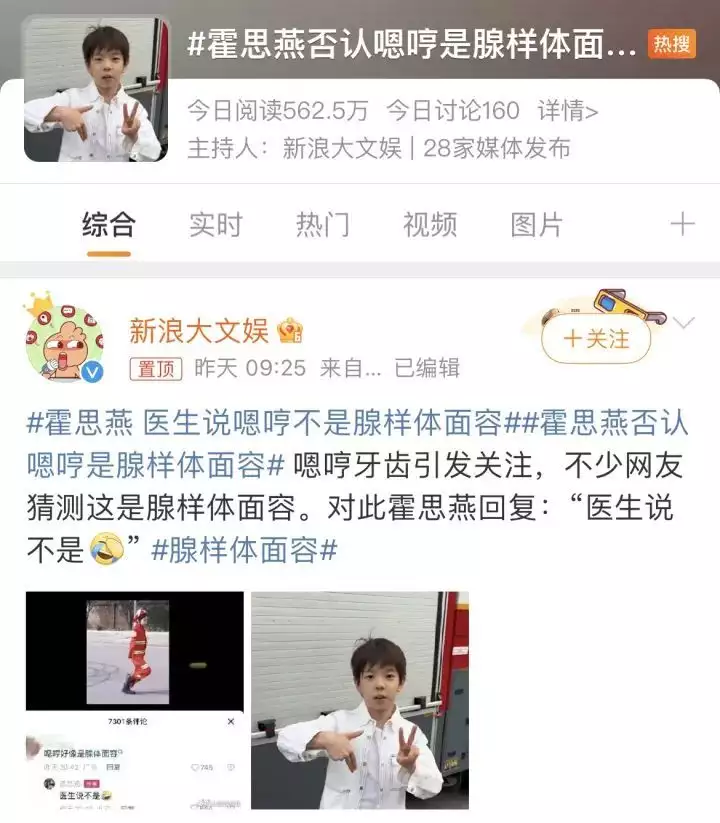 据钱江晚报消息,近日,#霍思燕否认嗯哼是腺样体面容#的新闻上了热搜 。