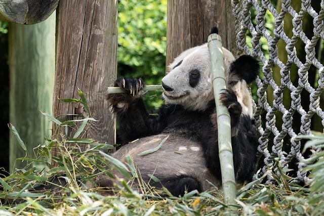 美国田纳西州孟菲斯动物园,旅美大熊猫乐乐正在吃竹子。澎湃影像 图专家们根据检查结果,达成共识:乐乐体重偏瘦,血液检测结果未显示有任何疾病的证据;影像学检查无异常。乐乐的牙科检查显示多颗磨牙断裂。所有断裂的牙齿都没有松动或感染,并保持功能。