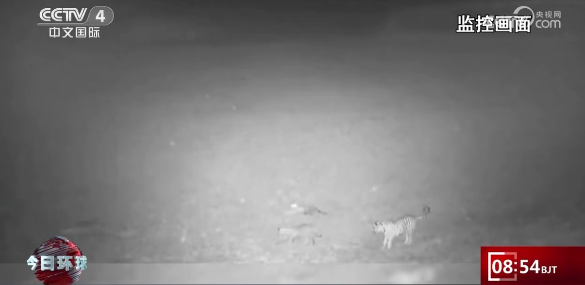 近日,吉林延边边境管理支队的民警通过视频巡查发现,在珲春市有5只野生东北虎在夜晚结队出没,监控系统记录下五虎同框的画面。