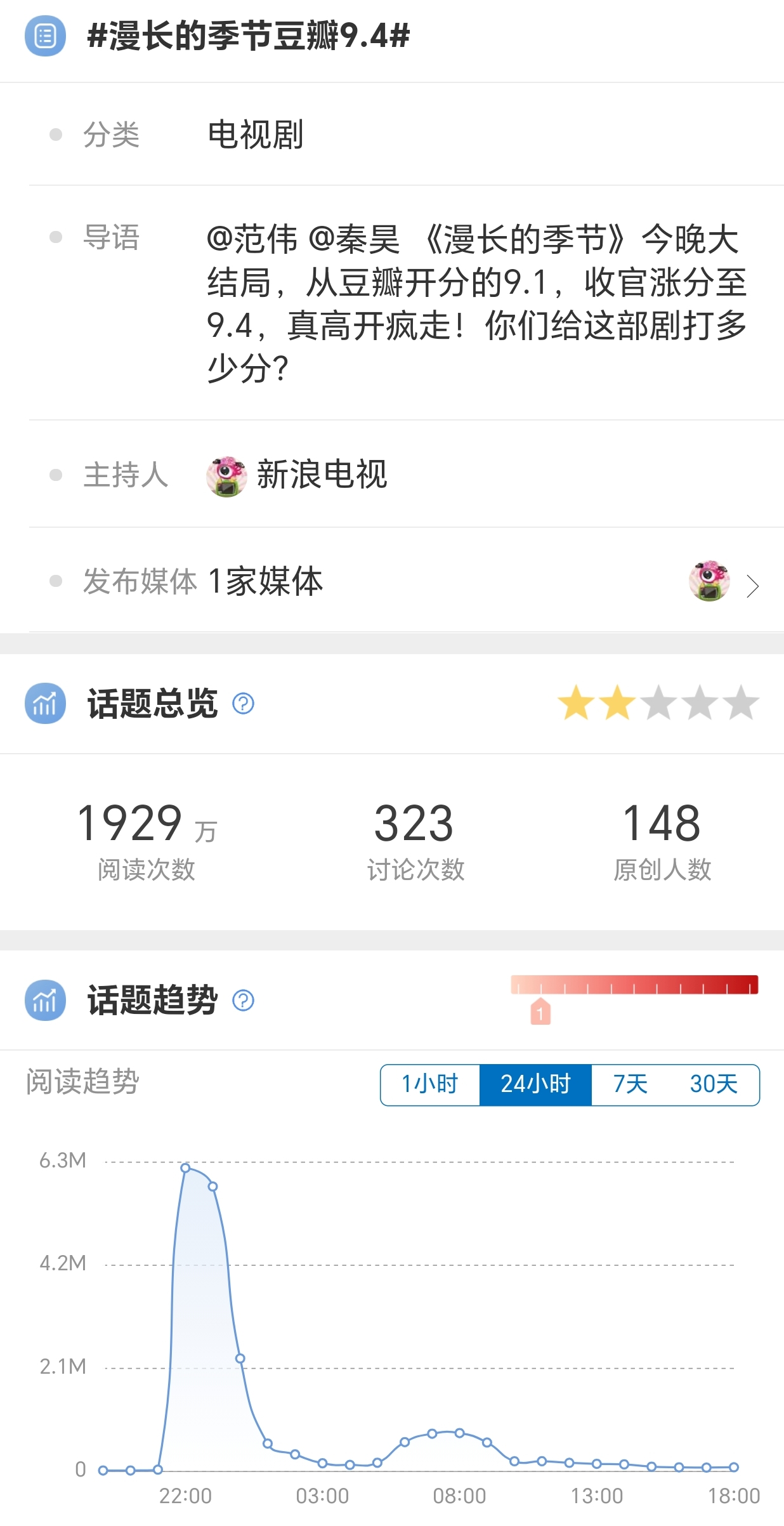 网剧《漫长的季节》大结局了,从豆瓣开分的9.1,收官涨分至9.5,真高开“疯”走!《漫长的季节》播出期间,多个话题词登上热搜。