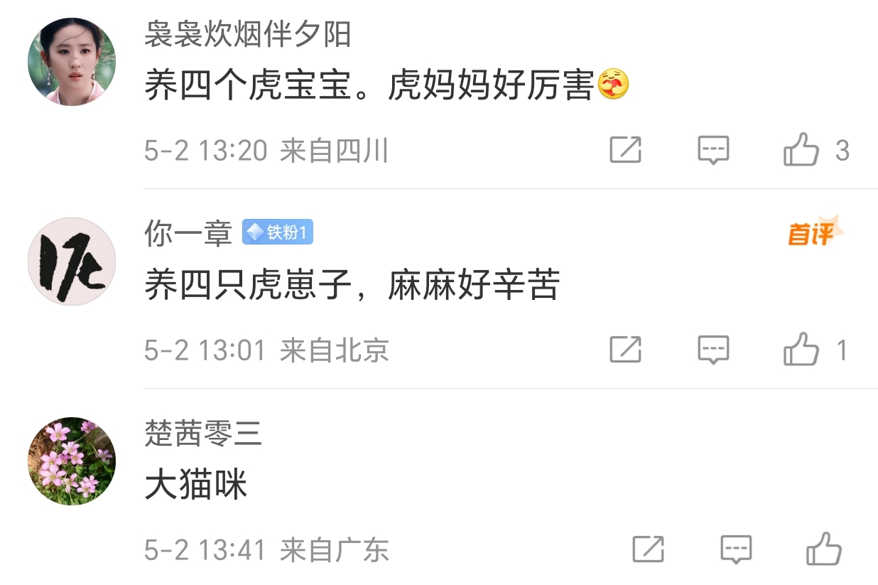虎妈妈带四只虎宝宝遛弯儿觅食