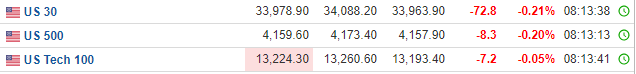 美股周一收盘,三大指数普跌:道指跌0.14%,报34051.70点;纳指跌0.11%,报12212.60点;标普500指数跌0.04%,报4167.87点。