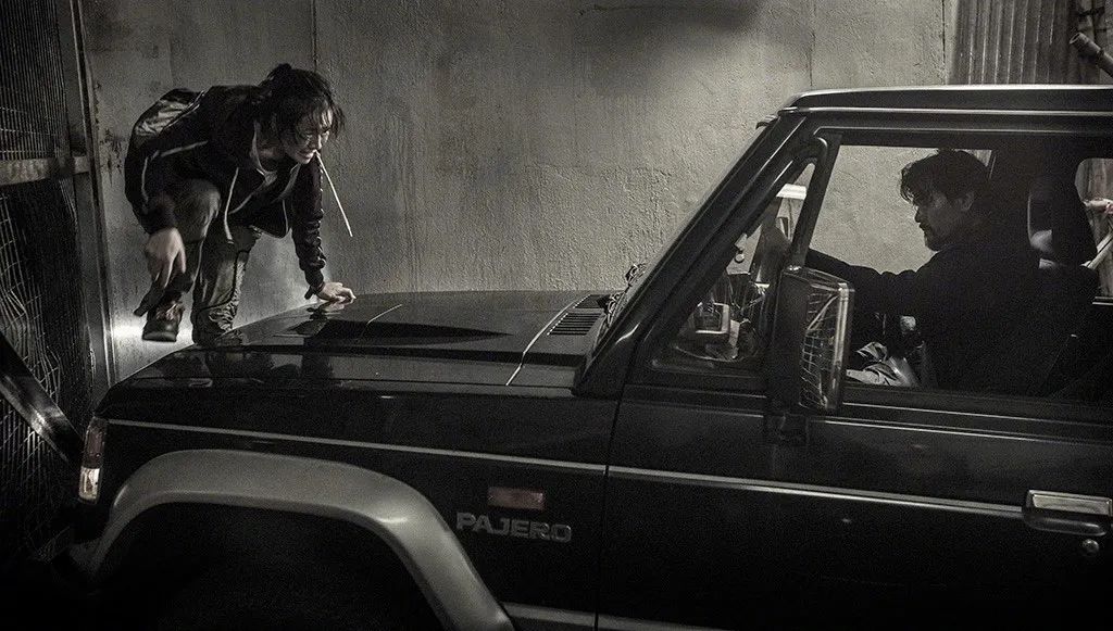 电影中有一场大全景下的奔跑戏,她被林家栋开车追杀,一路狂奔,从狭窄的巷道跑到大马路,又跑进隧道。