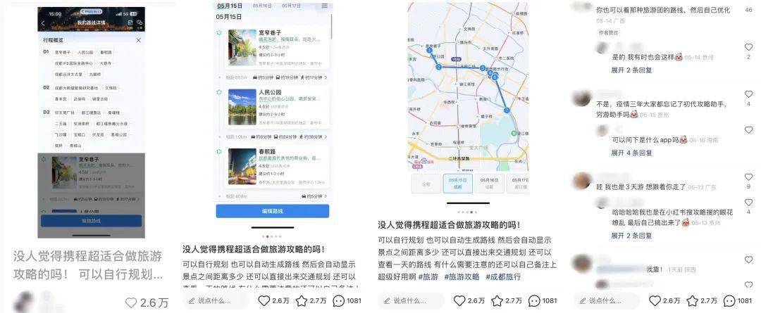 五、小红书爆文拆解-旅游出行类 案例九:没人觉得携程超适合做旅游攻略的吗!