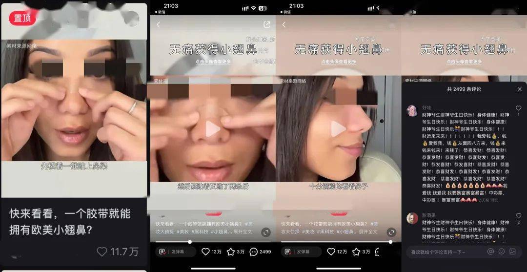 小红书爆文内容:内容分享了用胶带固定鼻子,最后得到了一个完美的鼻子,这看似特别完美的过程,很难让人不爱。
