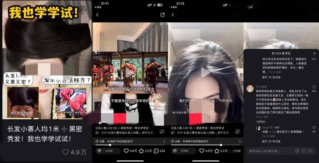 案例四:长发小寨人均1米+黑密秀发!我也学学试试