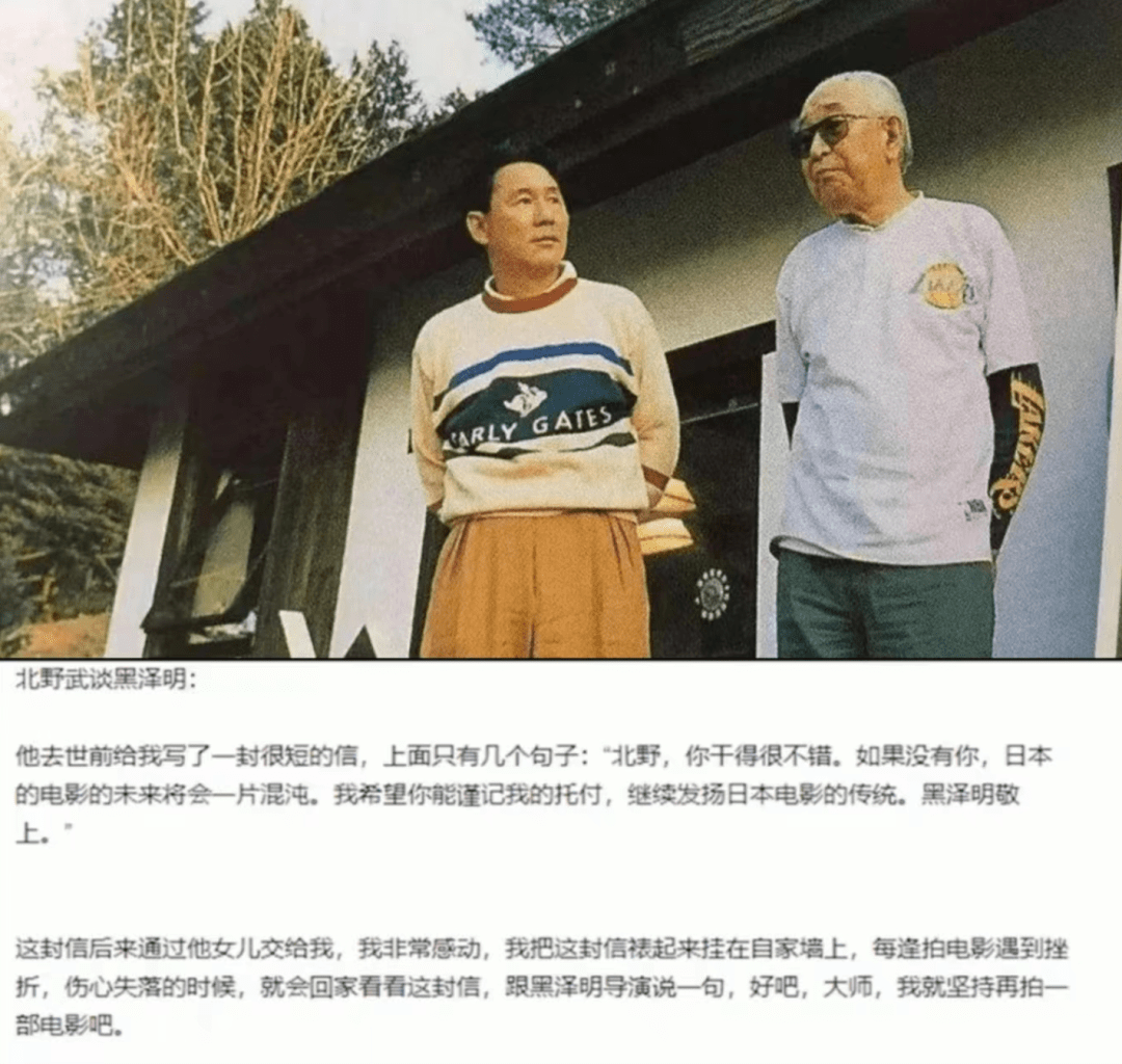黑泽明曾在去世前给北野武写了一封很短的信。