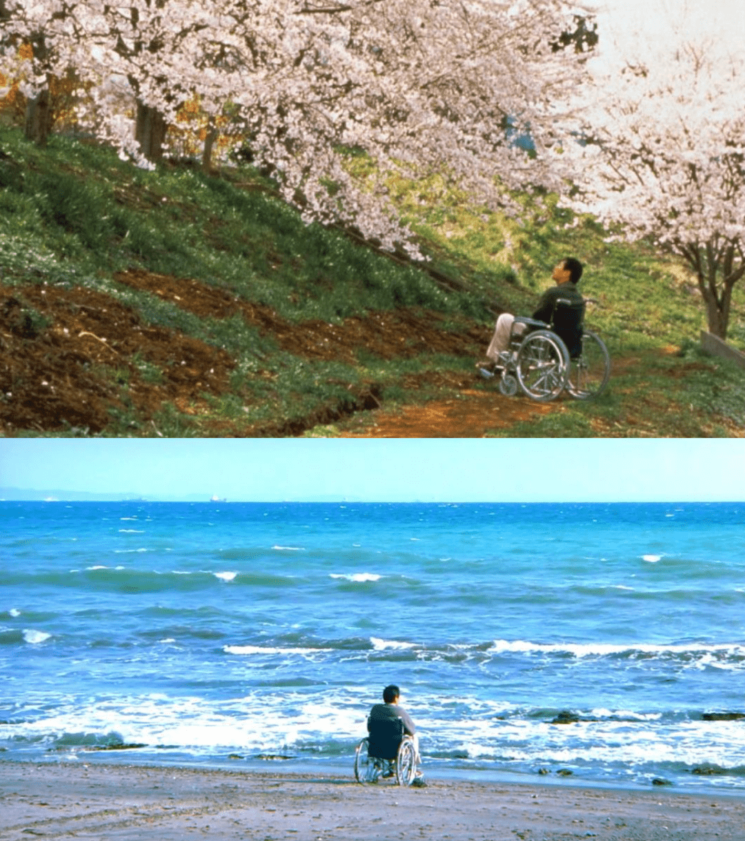 但在《花火》中,堀部在北野武的鼓励下依然试着拥抱生活,一个人看潮起潮落,一个人看樱花烂漫,用画画消解消极。