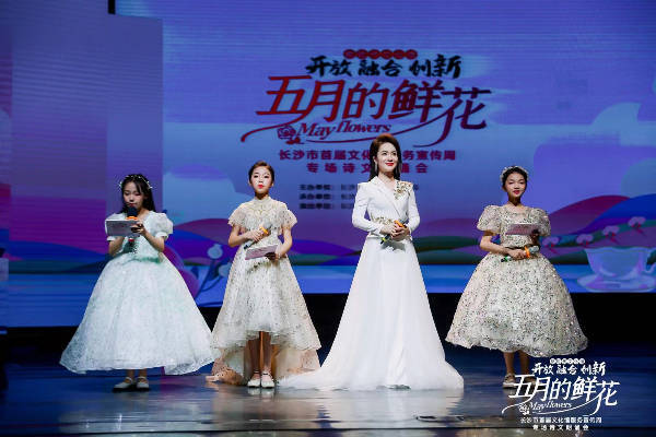 5月27日晚,“五月的鲜花”文化馆服务宣传周专场诗文朗诵会在长沙实验剧场举行。