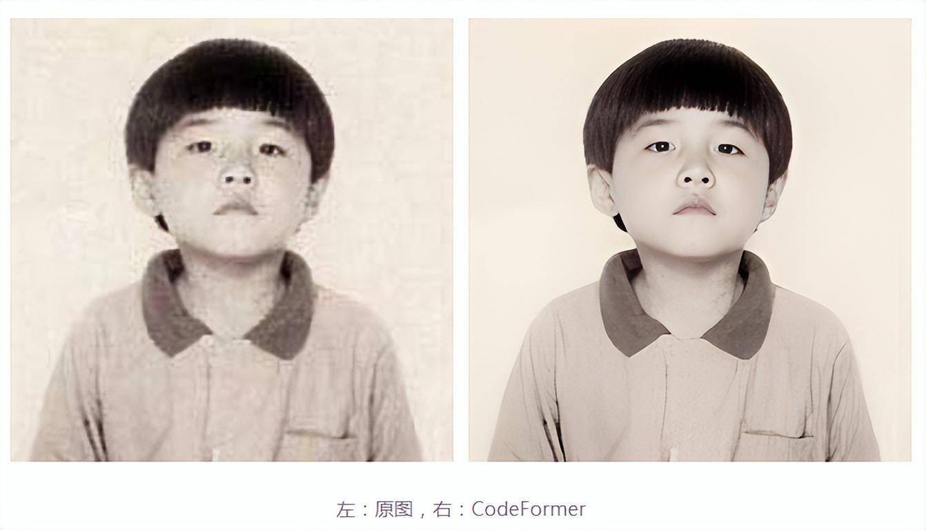 其中CodeFormer和RestorePhotos.io为免费开源工具。前者是南洋理工大学周尚辰等人的作品,基于Codebook Lookup TransFormer模型实现。后者是上面说到过的基于腾讯ARC实验室GFPGAN模型实现的照片修复工具。