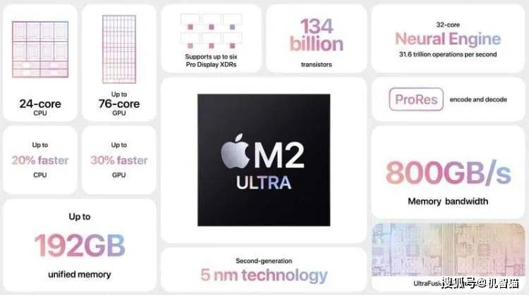 至于另两款Mac,它们都采用了全新的M2 Ultra芯片(Mac Studio可选M2 Max芯片版本),这可芯片和此前的M1 Ultra类似,采用了UltraFusion接口将两颗M2 Max芯片组合而成,算力也是实现了成倍增长。