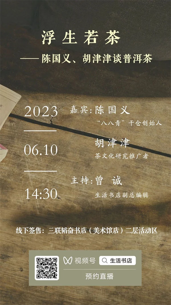 说到普洱生茶的存储,干仓法以及干仓储藏代表作“八八青”不得不提。而与此紧紧相连的一个名字则是陈国义——“八八青”和干仓之味的创始人。6月10日,生活书店邀请《茶境》两位作者陈国义、胡津津做客三联韬奋书店(美术馆店)和大家分享《茶境》这本书的创作故事,以及普洱茶的相关知识。