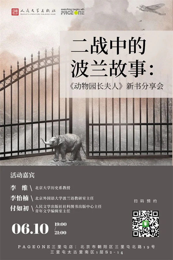 拥抱和平的年代,我们为什么还需要一本又一本关于战争的书籍?因为历史始终与我们当下的生活相连。《动物园长夫人:一个波兰女性的战争回忆》所讲述的历史,不仅仅是一个女版“辛德勒”的故事,而是历史场域下人的境遇与价值,以及历史与人性的关系。6月10日,北京大学历史系教授李维,北京外国语大学波兰语教研室主任李怡楠与人民文学出版社社科图书出版中心主任付如初做客PAGEONE三里屯店,聊聊《动物园长夫人》与二战中的波兰故事。