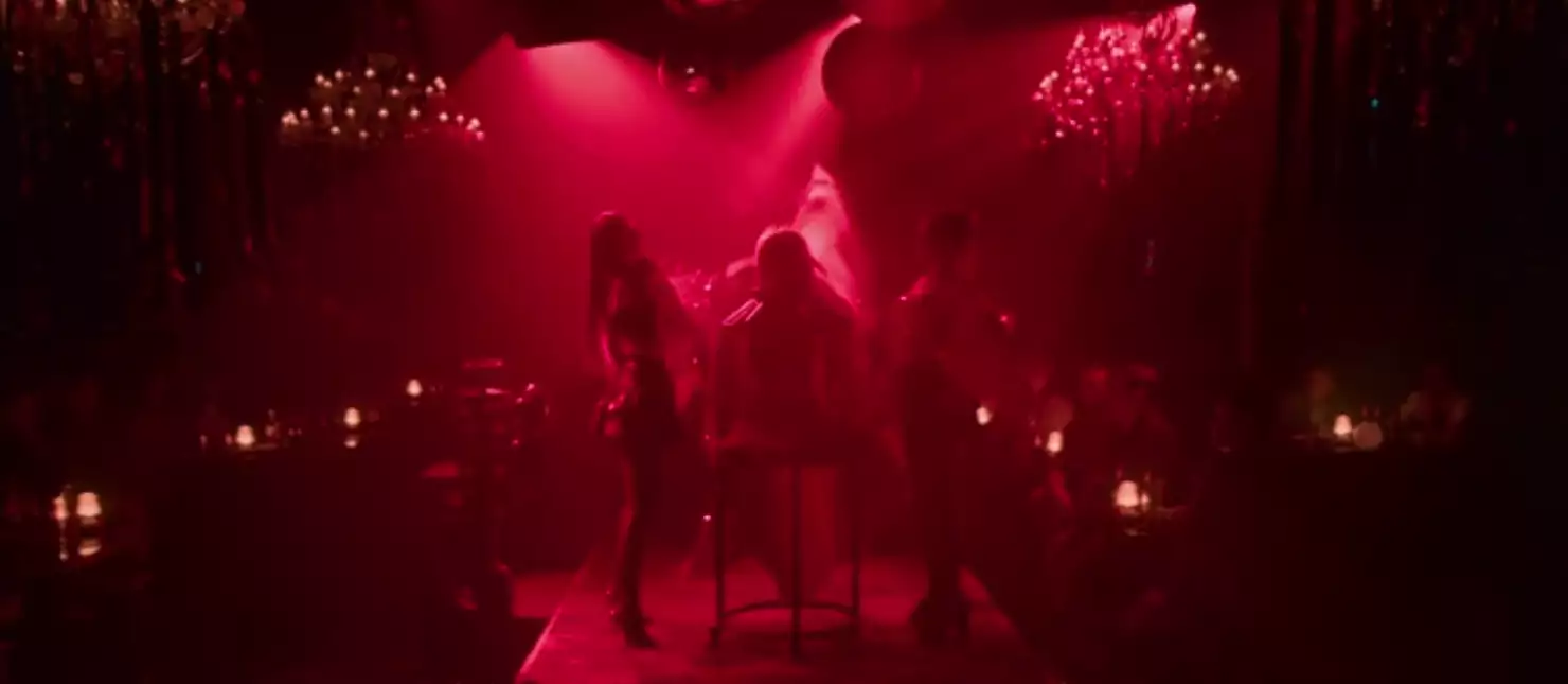 片中出现了大量的血红色搭上黑暗的布景,在打上青绿色的灯光,这妥妥就是恐怖片的标配。