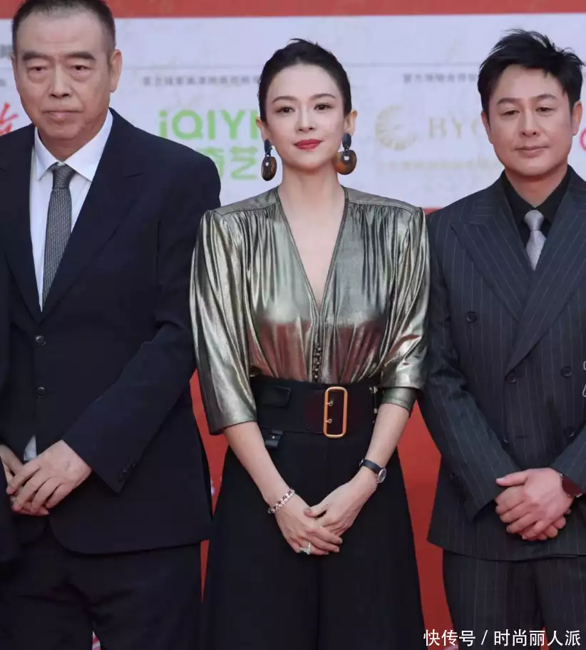 44岁章子怡天生电影脸!穿深v裙闪耀红毯,陈红苍老不少被比下去