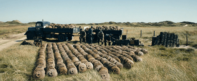 《地雷区》中11个少年组成小队,前往死亡海岸线,他们要一起挖出4.5万颗随时可能爆炸的地雷。丹麦军官卡尔承诺,只要顺利完成,他们就可以回到德国。