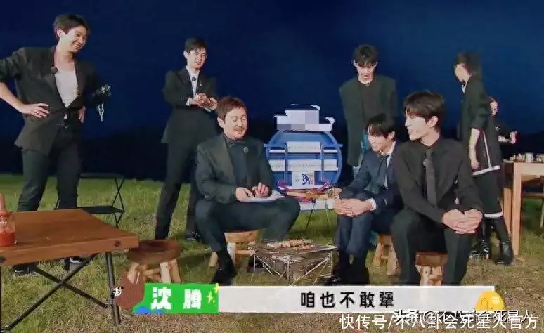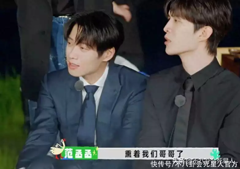 在综艺《现在就出发》里,沈腾在烤串,范丞丞开玩笑说:你熏着我们哥哥(指魏大勋)了!