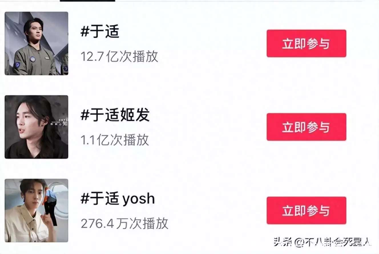 这是什么概念呢?出道三年的邓为话题播放量还没破亿,于适的也才十几亿。