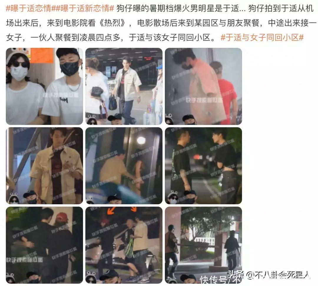 另外,于适还被狗仔拍到了疑似恋情,深夜与女生同进小区。虽然演员恋爱不算“塌房”,但事业正处在上升期,就有恋情的话,会“赶跑”一部分女友粉,不利于他后续的人气维持。